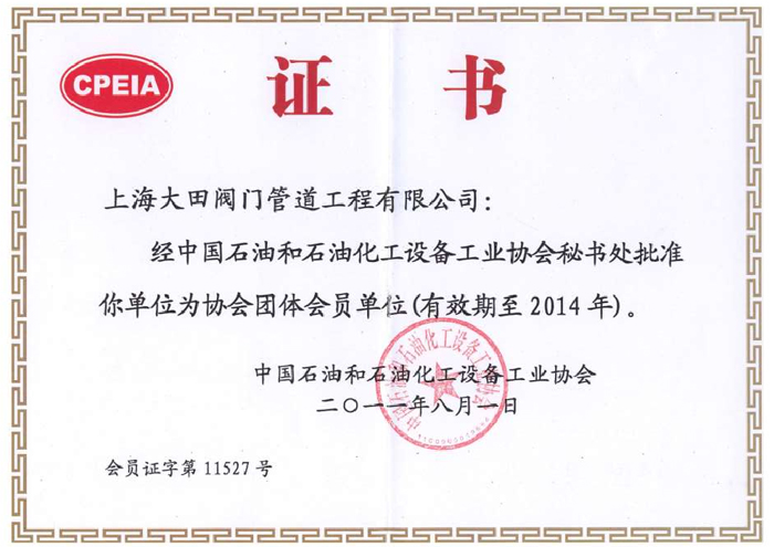 • 石化設(shè)備工業(yè)協(xié)會(huì)團(tuán)體會(huì)員證書(shū)