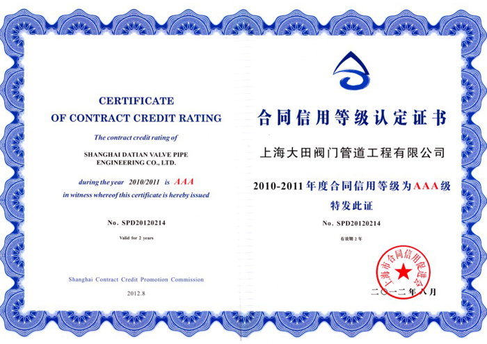 • 合同信用等級(jí)認(rèn)定證書(shū)