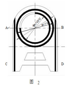 該閥體的閥座圈的外形尺寸較大,厚度 75.3mm,且中間圓孔較大,為準1200mm,總長度超過 2500mm,屬于典型的剛性較差、易變性工件。閥座圈基體材料為 ZG1Cr18Ni9Ti,環形密封面及導軌部位堆焊堆 802 硬質合金,如圖 2 所示(涂黑部分為堆焊合金處)。以前一般按照以下工藝進行加工:先粗車上平面及環形堆焊槽,刨導軌堆焊槽,堆焊,除應力熱處理,校平,精車上下平面及環形密封面,刨導軌。 按此工藝進行經常存在以下問題:堆焊后,座圈變形嚴重,A、B 兩部分上翹,特別是導軌尾部 C、D 兩部分上翹尤為嚴重,雖經多次校平,但 A、B、C、D 相對應座圈背面的部分,常常加工余量不足。且加工至成品后,座圈導軌外側堆焊合金厚度不足,有時甚至沒有合金;由于該閥用于催化裂化裝置,其流通介質為高溫、腐蝕性介質,由于合金的不足導致座圈性能大幅下降,嚴重影響其使用,閥門使用壽命縮短,甚至導致廢品的出現。