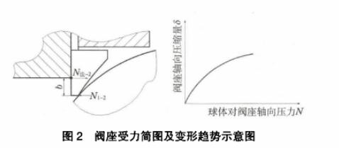 (1)、介質未加載前。閥門在安裝預緊間隙下,設球體受左右閥座的正壓力分別為N2一為1,弘1 0 1 安裝后左閥座的實際軸向壓縮量,為安裝后右閥座的實際軸向壓縮量,因為,左右閥座性能尺寸相同,所以《:《球體兩側的總預緊壓力為N2一汁咗1。 《(櫞D的值可通過該批次的閥座受力變形曲線來確定。 (2)、介質壓力加載后。假設此時球體受左右閥座的正壓力為 六N,介質對閥球的有效作用力為N介',如閥座的變形曲線為線性,則N2一[ ':N2司介'/2,蘇《':汁介'/2。球體兩側的總預緊壓力[ '+N2一在N2一汁咗1,表明如閥座的軸向變形是線性的,介質加載后總預緊壓力不變。實際上閥座的變形是非線性的,此時 '為:一介'/2+A,3:啊+庳介' /2 +ANO實際球體兩側總的預緊壓力1 ' ':汁櫞汁2A如右閥座為剛性體, 2AN為最大值,此時2厶№庳介'。表明油于閥座的軸向變形是非線性的,介質加載后總預緊壓力會比初始安裝預緊力增加2厶N, 2A由閥座非線性變形協調引起,其值在0(線性)和庳介'(剛性)之間,只要確定N的曲線,即可推算出較為正確的A值。其中 ' 介 等于介質對球體的直接作用力庳介加上介質對左閥座的作用力傳遞給球體的分量,計算公式介'介+0•5一)/4: 2/4 •5×P“(2一2)/4。