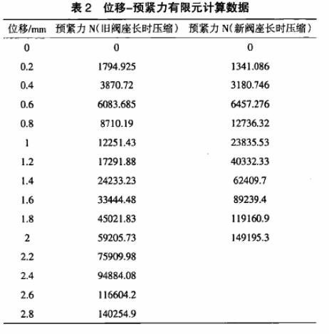 5.2、計算用(閥座正壓力與軸向變形)的相關數據及曲線圖預緊力(N)和位移
