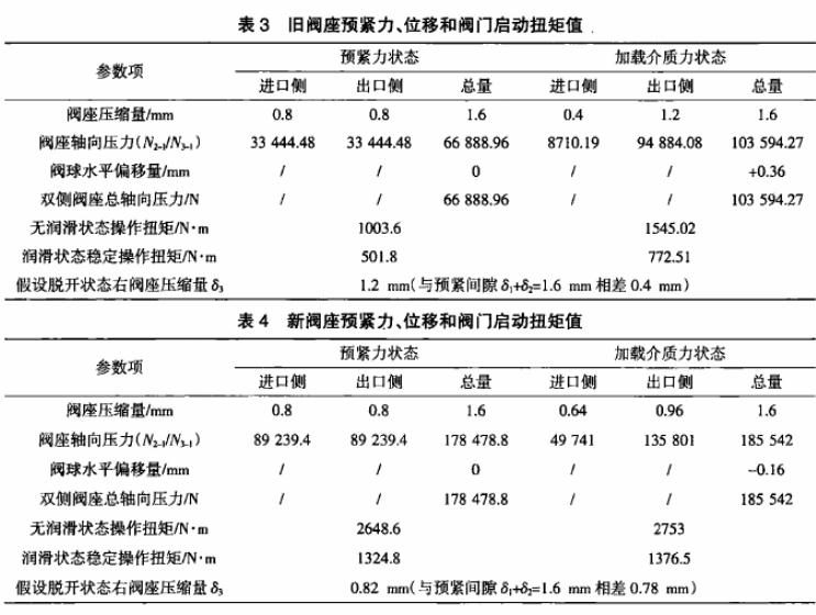 • 新閥座由于軸向變形剛度明顯比舊閥座大,導致在相同的預緊間隙下閥門的預緊啟動扭矩和介質加載后的啟動扭矩大幅增加,在閥門剛安裝后啟動扭矩已接近臨界值,造成了閥門無法打開的故障。